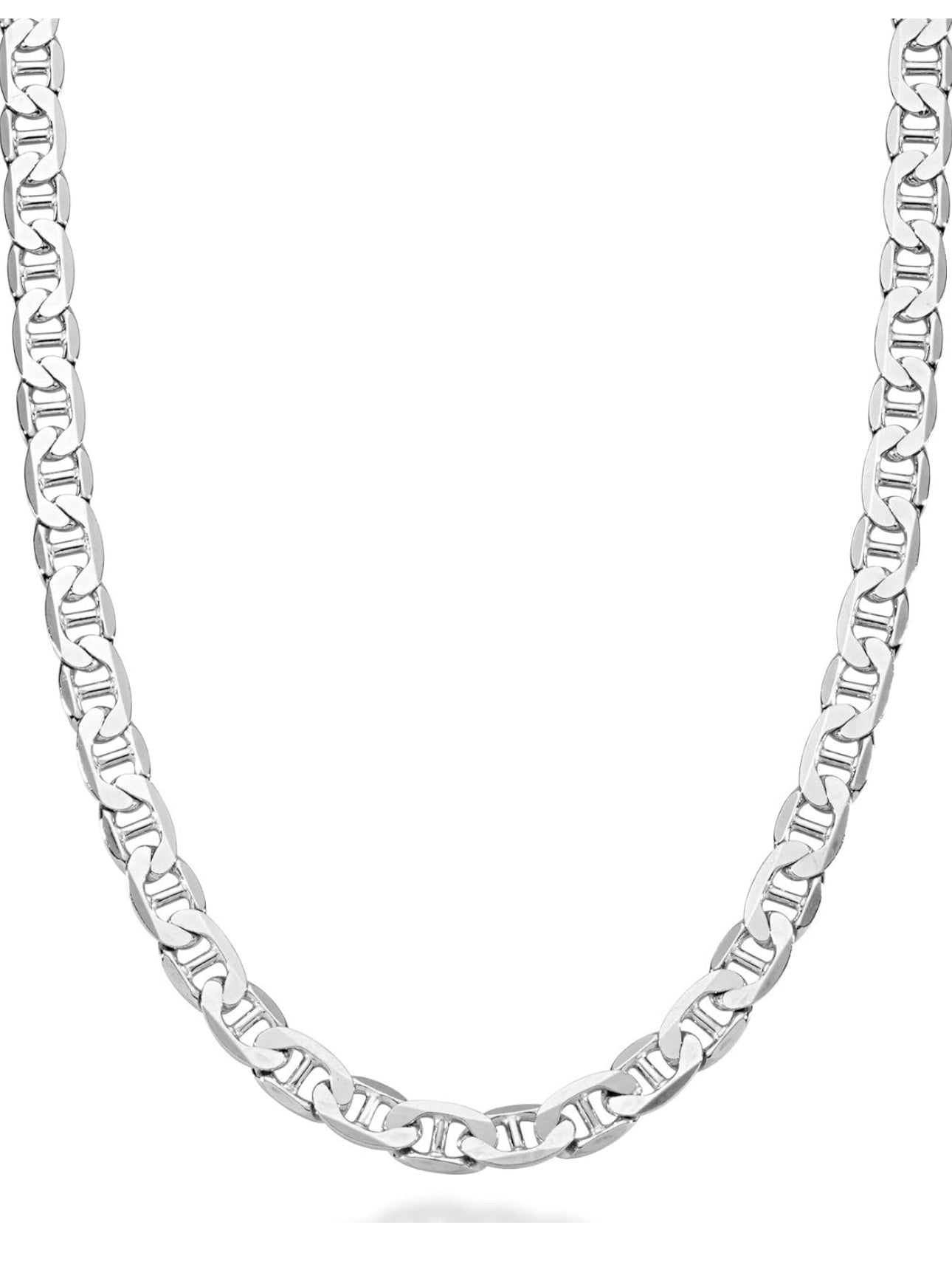 Solid 925 Sterling Silver Diamond-Cut Flat Mariner Link Chain Necklace for Men Women